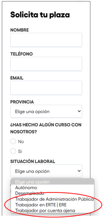 Por lo tanto, a continuación, te explicamos cuáles son las opciones que deberás completar en el formulario si eres un trabajador fijo discontinuo a la hora de seleccionar un curso.